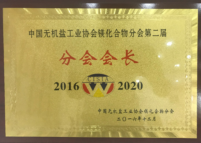中國(guó)無(wú)機(jī)鹽工業(yè)協(xié)會(huì)鎂化合物分會(huì)第二屆分會(huì)會(huì)長(zhǎng)