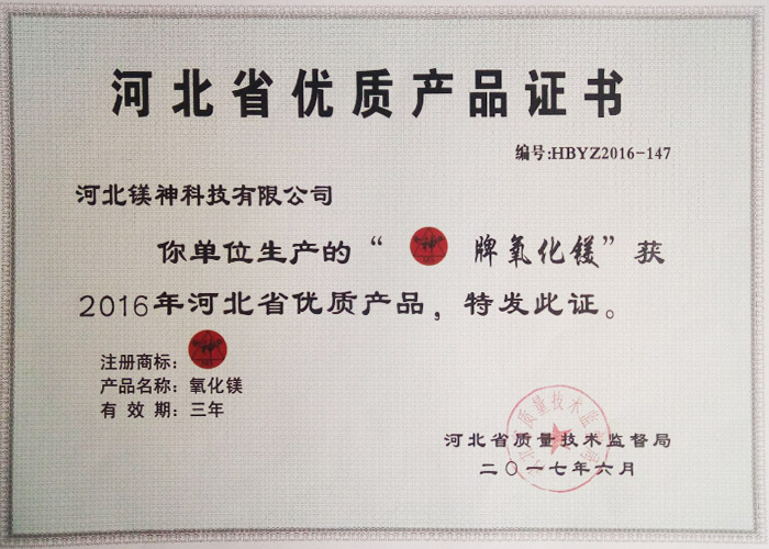 河北省優(yōu)質(zhì)產(chǎn)品證書(shū)