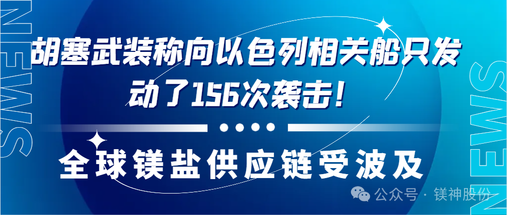 胡塞武裝稱向以色列相關(guān)船只發(fā)動(dòng)了156次襲擊!全球鎂鹽供應(yīng)鏈?zhǔn)懿?/p> 央視新聞消息,當(dāng)?shù)貢r(shí)間5月9日,也門胡塞武裝發(fā)言人葉海亞·薩雷亞發(fā)表電視講話稱,胡塞武裝對(duì)多艘與以色列有關(guān)船只進(jìn)行了打擊。而此前有數(shù)據(jù)指出胡塞武裝稱向以色列相關(guān)船只發(fā)動(dòng)了..